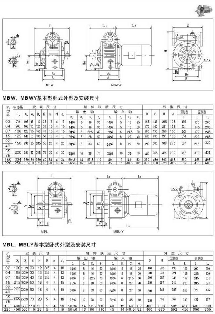 MBW.MBWY基本型臥式外型及安裝尺寸MBL.,MBLY基本型臥式外型及安裝尺寸